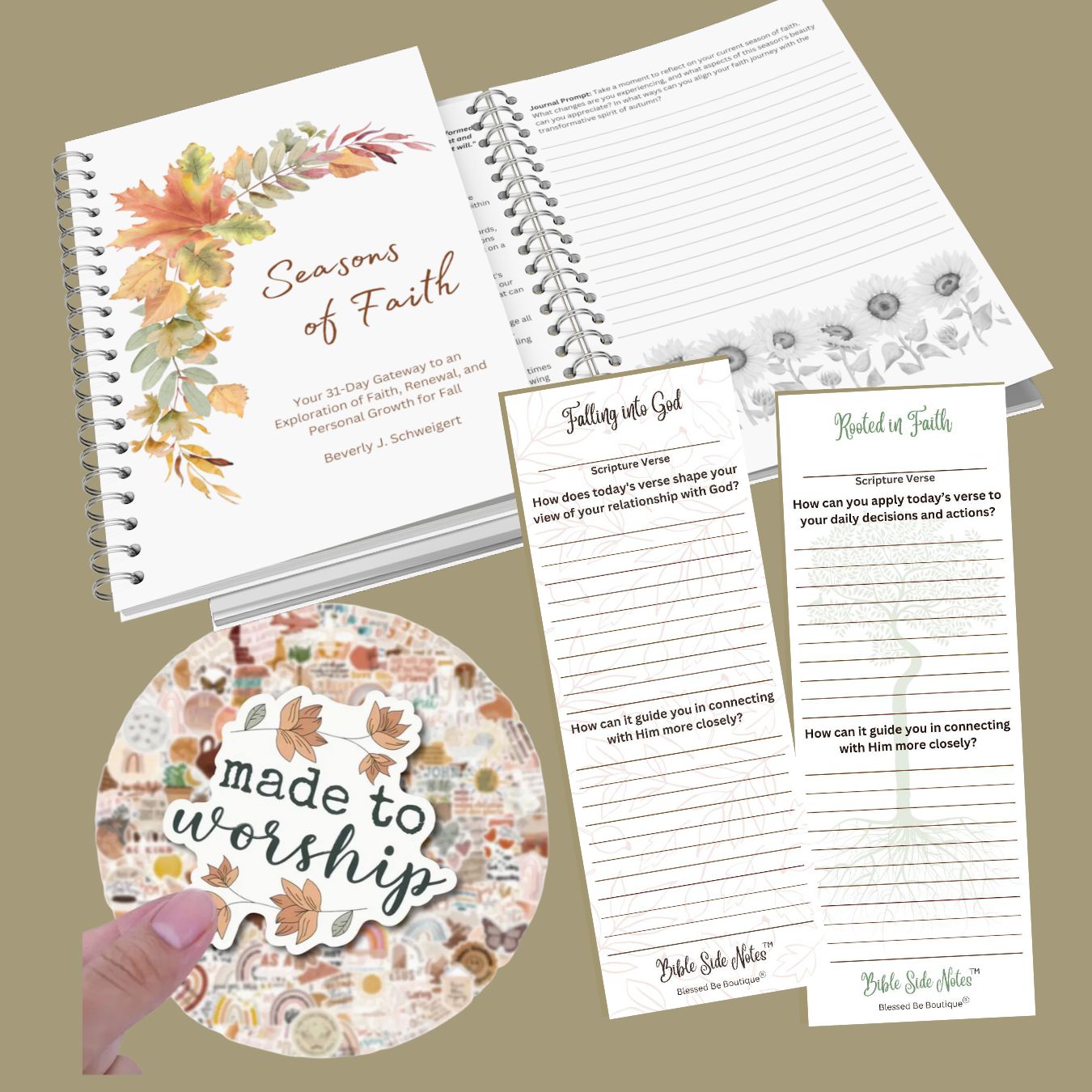 🍁 100-Piece Sticker Pack: Express your faith creatively with our exclusive sticker pack. These beautifully designed stickers will add an extra touch of inspiration to your journaling and devotional experience.