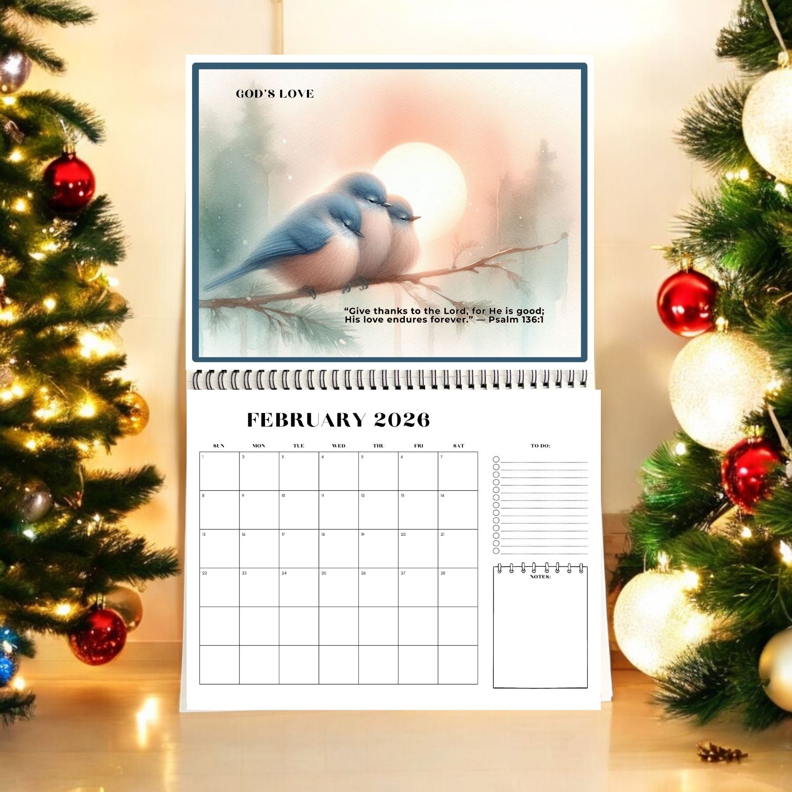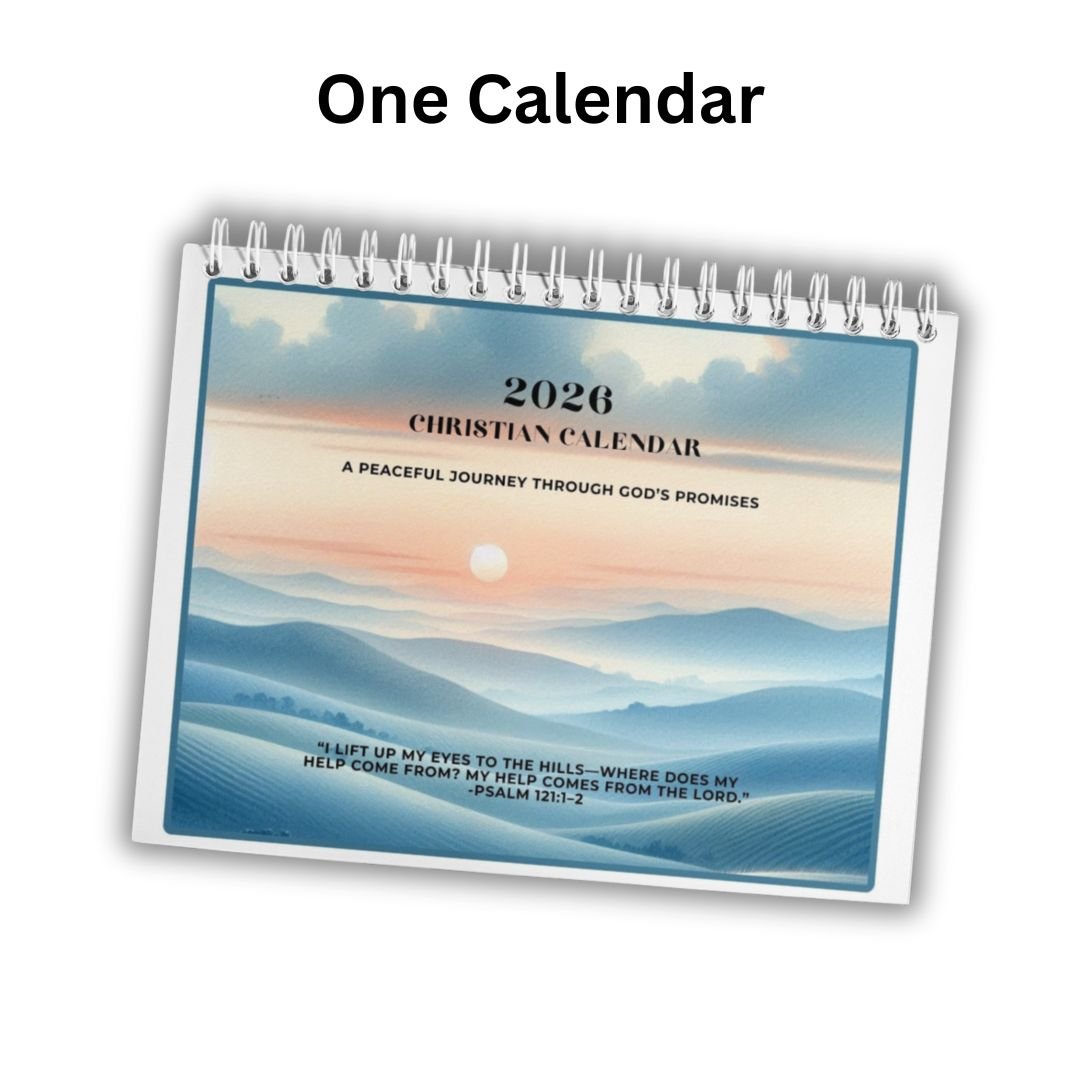 Bring calm, beauty, and Scripture into every season of the year with our brand-new 2026 Christian Calendar. Designed with soothing watercolor nature scenes in soft blues and warm peach tones, this calendar creates a gentle reminder of God’s presence in your everyday life.