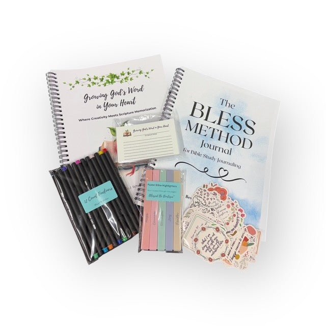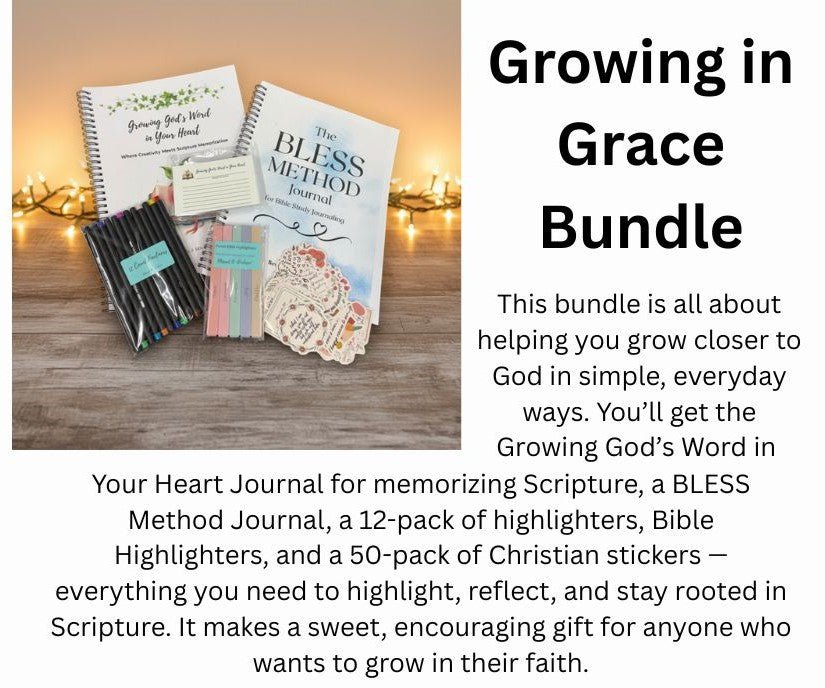 This bundle is all about helping you grow closer to God in simple, everyday ways. You’ll get the Growing God’s Word in Your Heart Scripture Memorization Journal, a BLESS Method Journal, a 12-pack of highlighters, Bible Highlighters, and a 50-pack of Christian stickers — everything you need to highlight, reflect, and stay rooted in Scripture. It makes a sweet, encouraging gift for anyone who wants to grow in their faith.